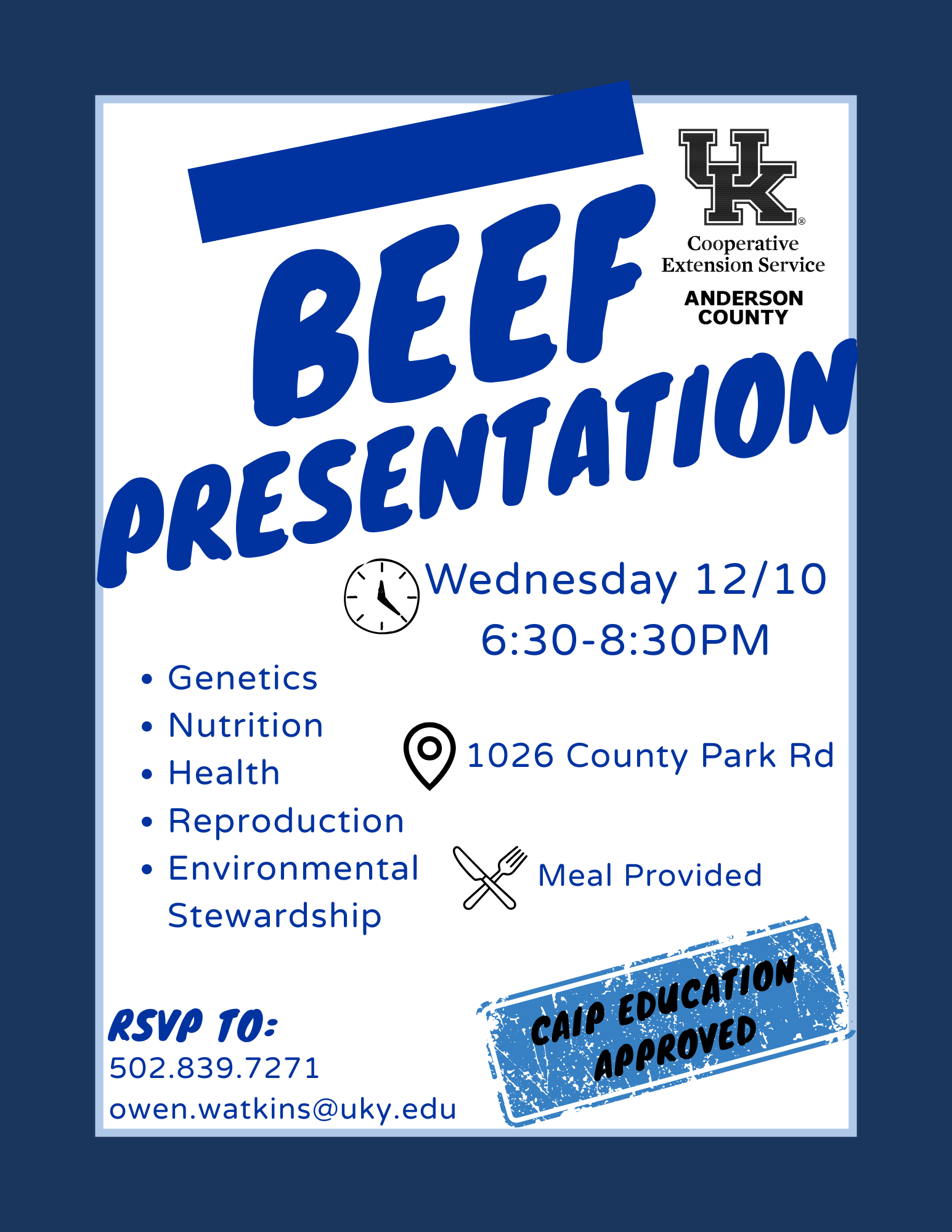 Find helpful information about the Kentucky Cattlemen's Association and learn how to be a part of your local Anderson County Cattlemen's Association.